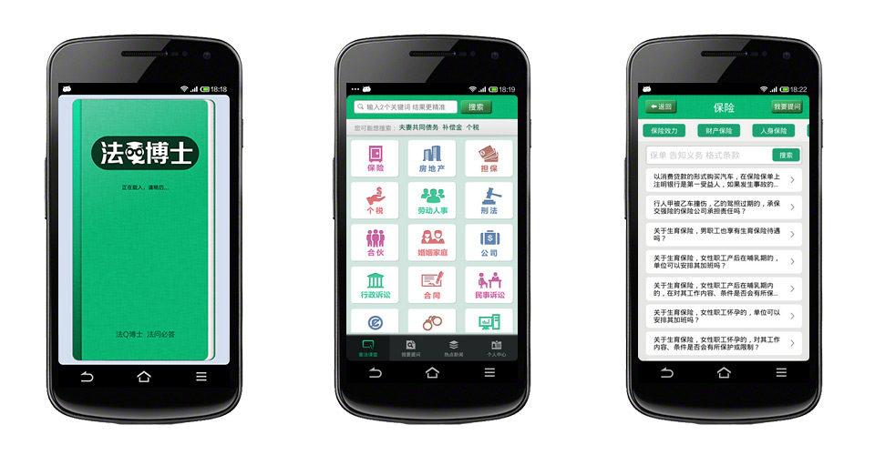 法Q博士是国内第一款通过预设多种情景分析、自助问答的方式,来帮助普通用户解决常用法律问题的移动客户端软件,使得用户无需再查询晦涩、枯燥的法条,只要输入点击分类查询或输入关键字,就可以快捷查询到相关的法律规定和建议。另有注册律师在线提供后续深度个化性咨询服务。同时,法Q博士也可以作为律师日常办案的法宝。不必学法,瞬间人人成为大律师!